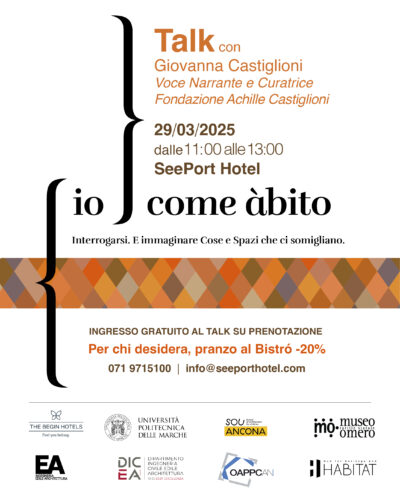 Un format ideato e realizzato con la dedizione e la cura di Annatildestudio per The Begin Hotels, il SeePort Hotel, l’Università Politecnica delle Marche (in particolare del Dipartimento DICEA, Corso di Laurea Edile Architettura, Gruppo di ricerca HUB FOR HERITAGE and HABITAT, SOUXANCONA_ La Scuola di Architettura per Bambini e Bambine), l’Ordine degli Architetti della Provincia di Ancona e il Museo Tattile Statale Omero.