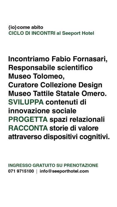 Fabio Fornasari, Architetto Museologo e Curatore della Collezione Permanente di Design al Museo tattile statale Omero, il 12 aprile 2025 e il 10 maggio 2025 chiude il ciclo di incontri la Psicologa dell’abitare, Donatella Caprioglio.